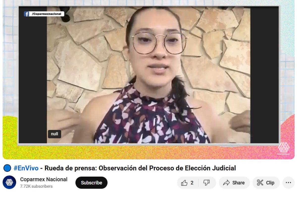 Alejandra Quezada, coordinadora de investigación de Juicio Justo, participó en la Rueda de Prensa sobre la Observación del Proceso de Elección Judicial organizada por la Confederación Patronal de la República Mexicana (COPARMEX). En su intervención, subrayó la importancia de que la ciudadanía participe activamente en la observación.